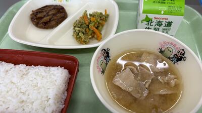 あみやきハンバーグは、給食ではいつも