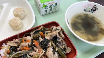 *こまつなのいためもの *牛乳
