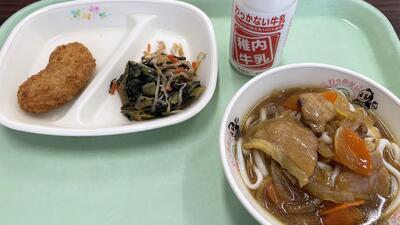 *カレーうどん *しろはなまめコロッケ