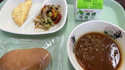 *えだまめとしめじのソテー *コッペパン *牛乳