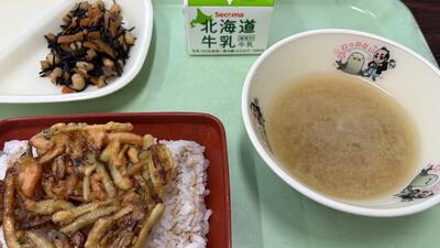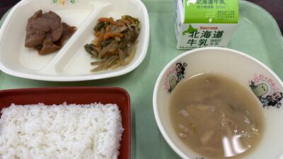 *ぶたにくとごぼうのしぐれに *ごはん *牛乳