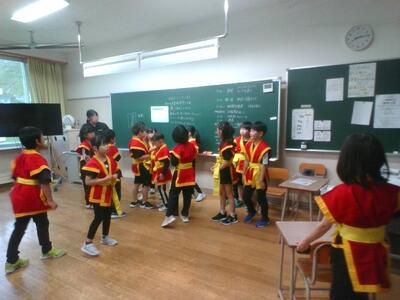自分たちで作ったお面もかぶり、手話を入れ、とっても上手です。