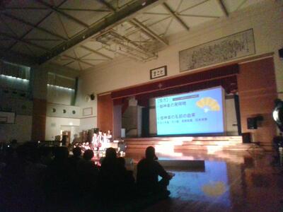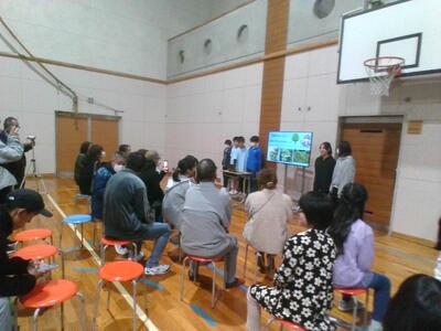 班に分かれて作成したプレゼンテーションをモニターに写し、