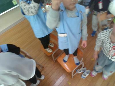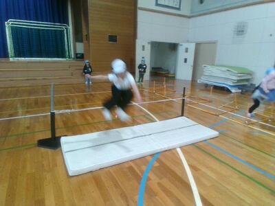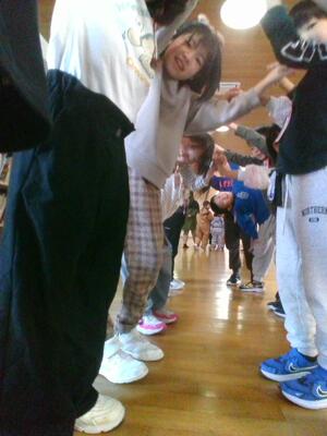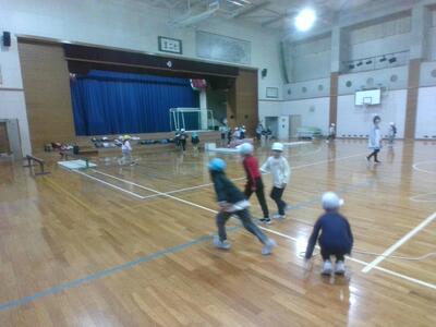 1年生がお手本になって、園児のお友達に体を動かすコツや方法を教えていました。