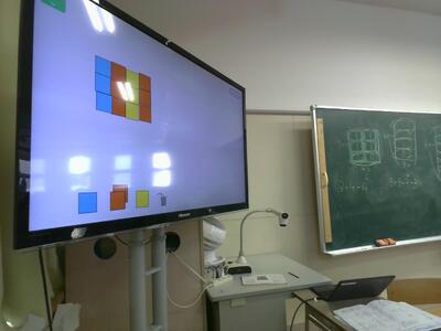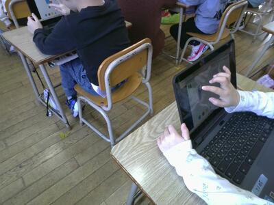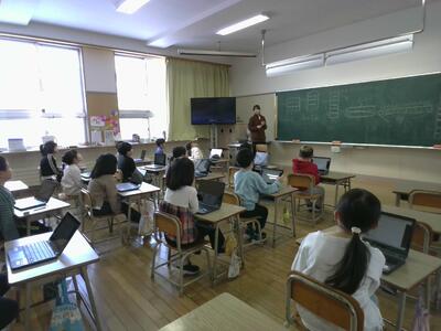 タブレットを使って、自分たちで問題も作り合っていました。