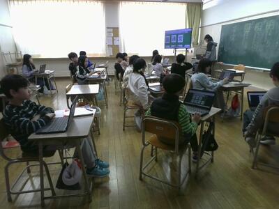 本日の学びの様子 投稿: 校長 (14:55) <1年生>生活科〜遊びコーナーを何度も何度も工夫しながら改善中! <2年生>算数〜図形について、自分が持ってきた箱を使って考えています。 <3年生>国語〜ロイロノートを使いながら、漢字の部首について学んでいます。 <4年生>国語〜調べ学習のまとめの発表会でした! <5年生>理科〜VTRを見ながら、新知識をゲット <6年生>算数〜難しい割合について悩みながら頑張っていました。 Tweet -