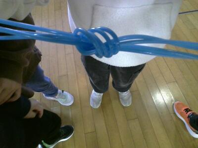 ウサギさんの耳に通して、しっかり縛ることもできていました!