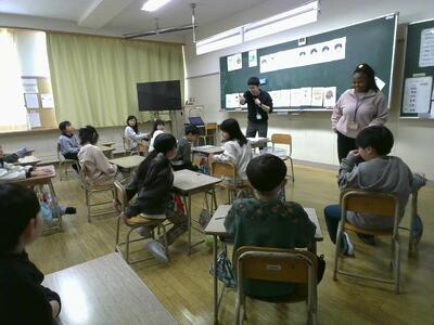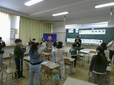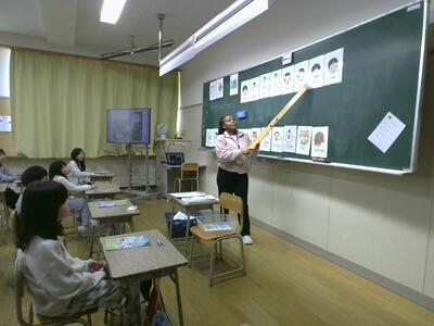 今日の3年生の外国語はALTの先生もお迎えし、体の部分をメインに学びます。