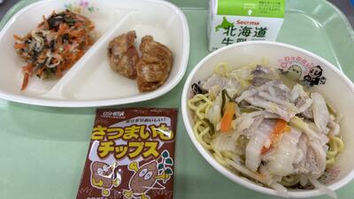 今日は、あげぎょうざとさつまいもチップスで