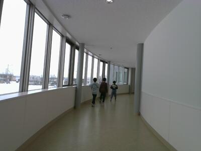 スカイウォークでつながった中央小学校と稚内中学校