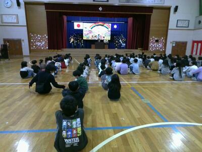 今朝の学校は、建物全体がウキウキワクワク